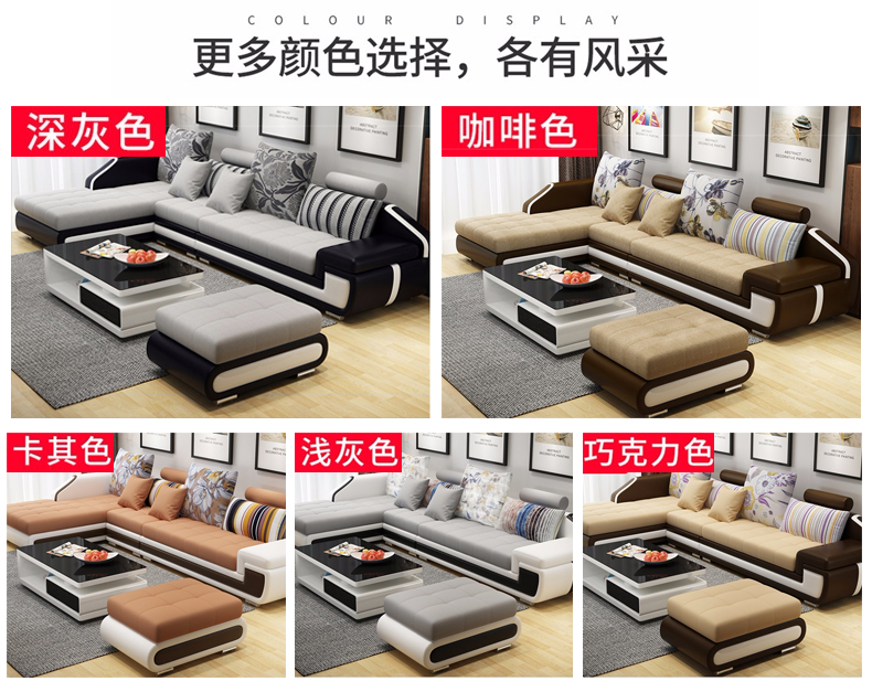 商品名称:任意3件伴价】中派 沙发 客厅皮布可拆洗布艺沙发组合 颜色备注 双人+贵妃