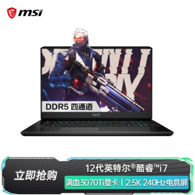 商品名称:微星(MSI) 冲锋坦克GP76GP66游戏本 双显三模笔记本电脑 16G内存1T固态 12代酷睿 i7/D5/3070Ti/2.5K240/17.3