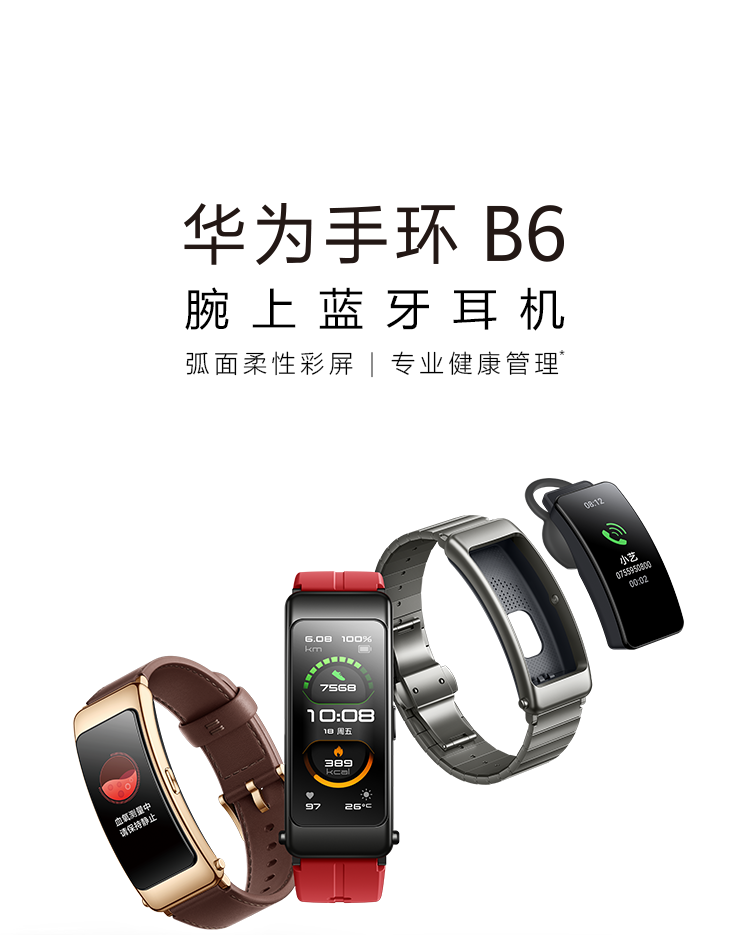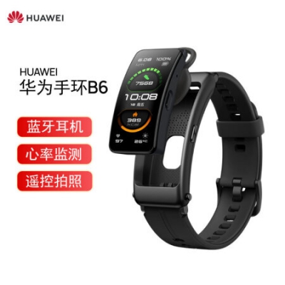 商品名称:华为手环B6 运动手环 智能手环 蓝牙耳机/心率监测/触控/遥控拍照/扫码支付/Android&IOS 运动款曜石黑